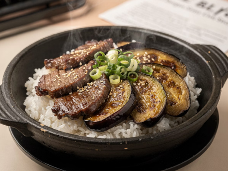 바쁜 평일 저녁, 간편하면서도 영양 가득한 가지 덮밥 한 그릇으로 건강한 한 끼를 챙겨보세요.