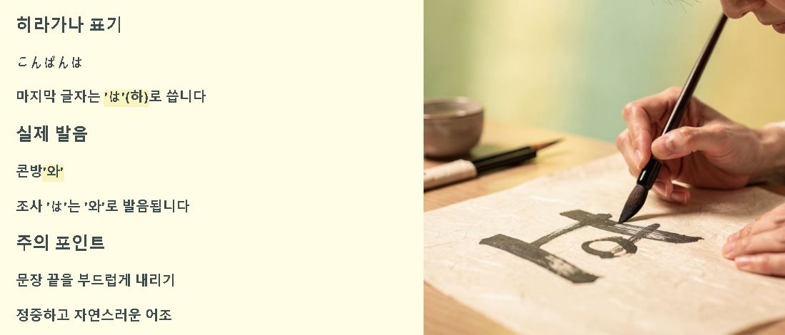 | 인사말 | 주요 사용 시간 | 특징 및 주의사항 |