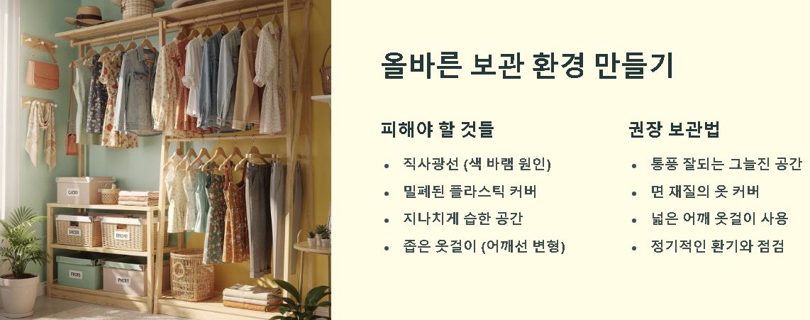 오래된 원단은 습기에 취약해 곰팡이가 생기기 쉬우므로 계절이 바뀔 때마다 제습제를 교체해주는 정성이 필요해요. 햇빛에 변색되지 않도록 그늘지고 통풍이 잘되는 곳에 걸어두는 것이 비결인데 이렇게 관리해 주면 세월의 흔적이 오염이 아닌 멋으로 남게 된답니다.