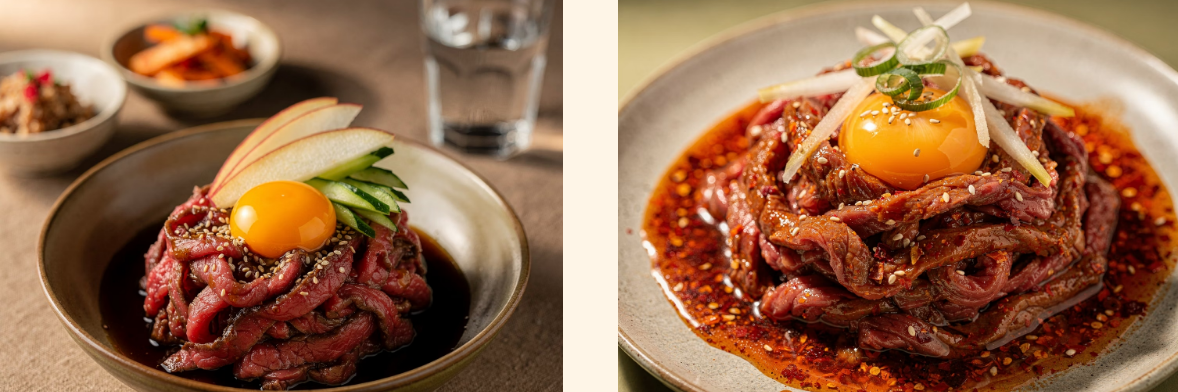 기본양념 외에 아주 조금의 변화로 맛의 깊이를 다르게 만들 수 있습니다. 특히 배나 달걀노른자는 육회와 떼려야 뗄 수 없는 찰떡궁합 재료들이죠.