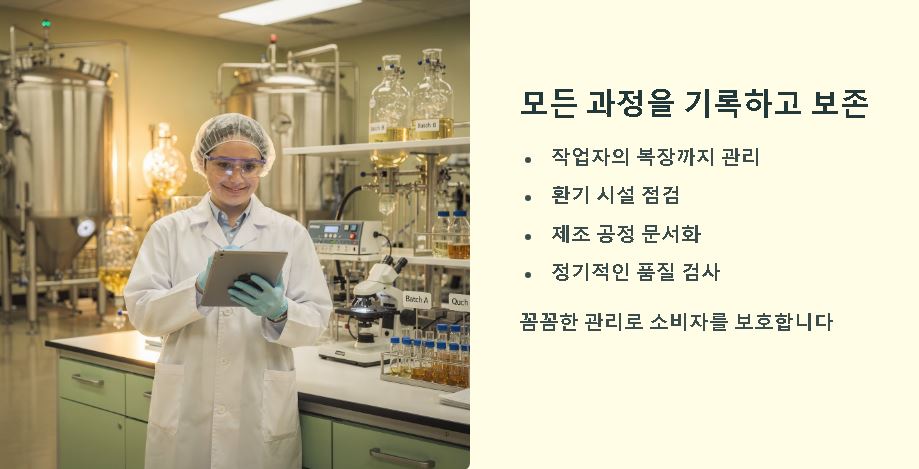 작은 실수 하나가 제품 전체의 상함으로 이어질 수 있기에 모든 과정을 기록하고 보존하는 것이 원칙이에요. 시간 절약을 위해 대충 넘어가는 일 없이 꼼꼼하게 관리된 제품만이 시장에 나올 수 있다는 점에서 소비자에게 매우 든든한 보호막이 되어준답니다.